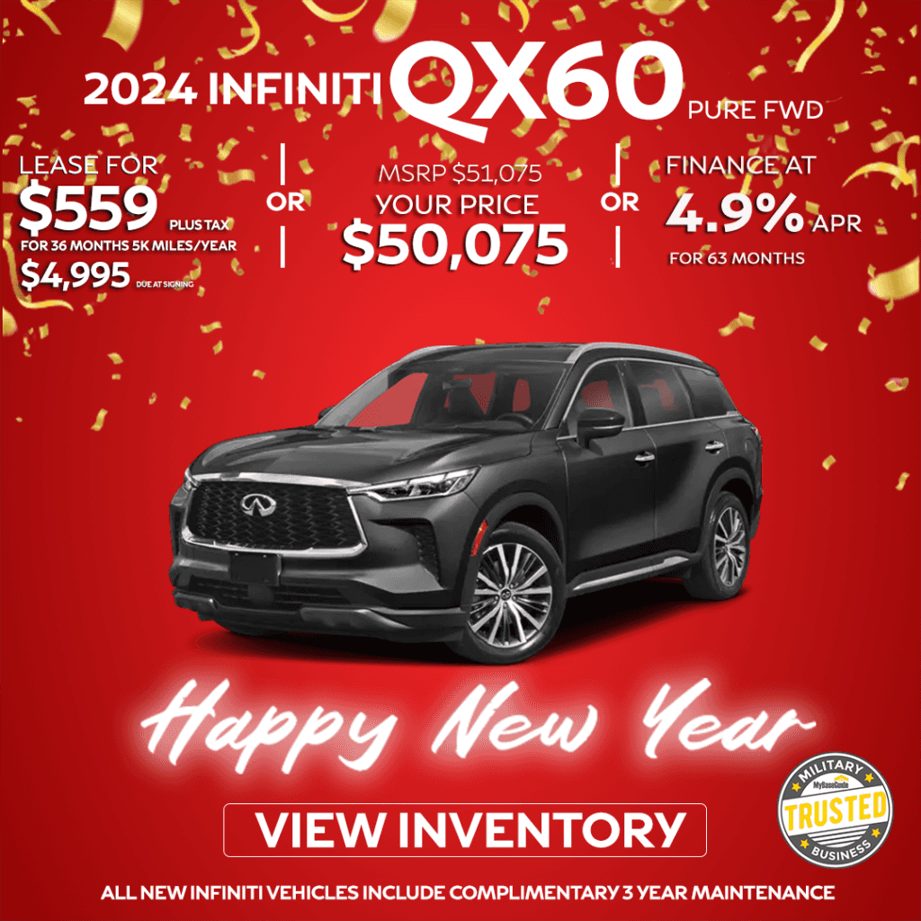 Infiniti typically pushes certain models based on inventory and seasonality. While deals change monthly, you often see fantastic Infiniti Lease Specials on their best-selling crossovers and sedans. Always keep an eye out for these vehicles: